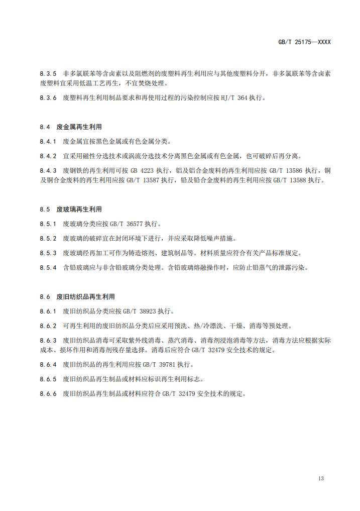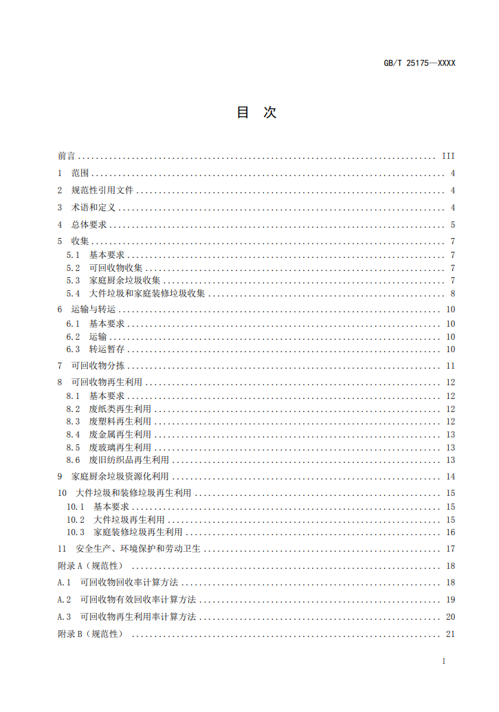 《生活垃圾回收利用技術(shù)要求》(征求意見稿)