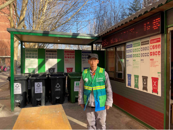 圖12 北京市石景山區(qū)永樂小區(qū)垃圾分類驛站的垃圾分類普法監(jiān)督員,攝影:李澤軍_1106794,拍攝時(shí)間:2022年3月4日