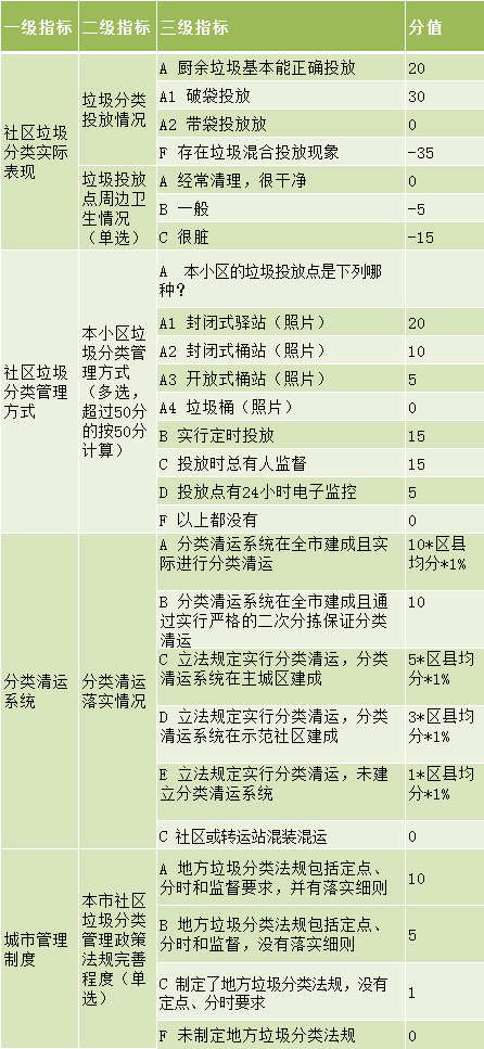 附錄3 垃圾分類指數(shù)評(píng)分標(biāo)準(zhǔn)