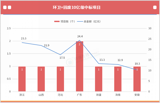 上半年,固廢和環(huán)衛(wèi)中標(biāo)的10億級項目也有18.6%,總金額占比也超過了10%,算得上豐收了。而且,上榜的固廢項目并不再以垃圾焚燒為主,固廢資源化的發(fā)展勢頭還是向好的。