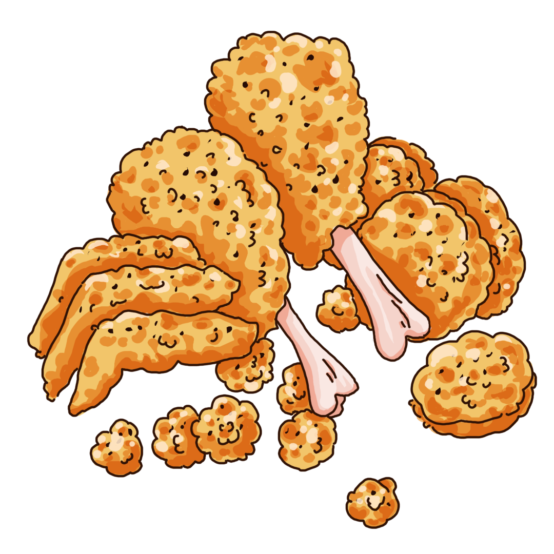 沒吃完的:雞腿&雞翅——扔進濕垃圾;包裝紙——扔進干垃圾桶