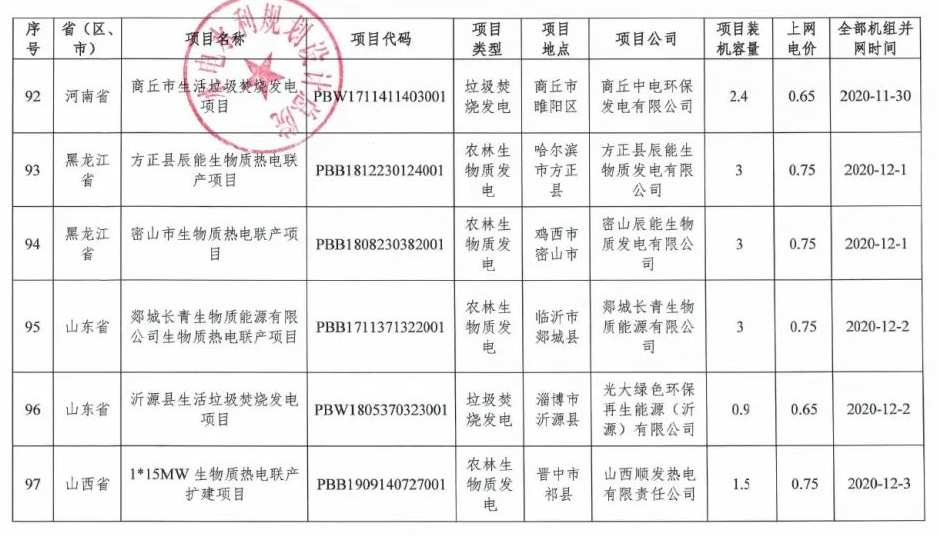 根據(jù)《國(guó)家發(fā)展改革委 財(cái)政部 國(guó)家能源局關(guān)于印發(fā)〈2021年生物質(zhì)發(fā)電項(xiàng)目建設(shè)工作方案〉的通知》(發(fā)改能源〔2021〕1190號(hào))、《國(guó)家可再生能源信息管理中心關(guān)于反饋納入2021年生物質(zhì)發(fā)電中央補(bǔ)貼非競(jìng)爭(zhēng)配置項(xiàng)目名單的函》(再生能信息函〔2022〕4號(hào))、《國(guó)家可再生能源信息管理中心關(guān)于明確擬納入2021年生物質(zhì)發(fā)電中央補(bǔ)貼項(xiàng)目信息的復(fù)函》(再生能信息函〔2022〕8號(hào))等文件要求,現(xiàn)將國(guó)家電網(wǎng)有限公司經(jīng)營(yíng)區(qū)擬納入2021年生物質(zhì)發(fā)電中央補(bǔ)貼非競(jìng)爭(zhēng)配置項(xiàng)目名單予以公示(詳見附件)。