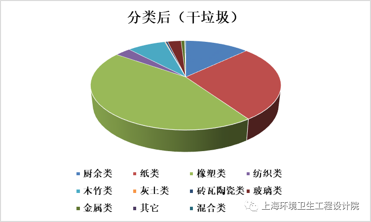《條例》實(shí)施后,全市干垃圾物理組成以橡塑類(lèi)(污損的塑料袋、塑料制品、一次性塑料飯盒等)為主,其次是紙類(lèi)(污染紙張、餐巾紙、衛(wèi)生間用紙、濕巾、紙尿褲等)和少量廚余類(lèi),分別占44.36%、27.46%、12.98%。根據(jù)《生活垃圾采樣和分析方法》(CJ/T 313-2009)規(guī)定,生活垃圾中“廚余類(lèi)”指各種動(dòng)、植物類(lèi)食品(包括各種水果)的殘余物,濕垃圾中廚余類(lèi)含量達(dá)到99%。
