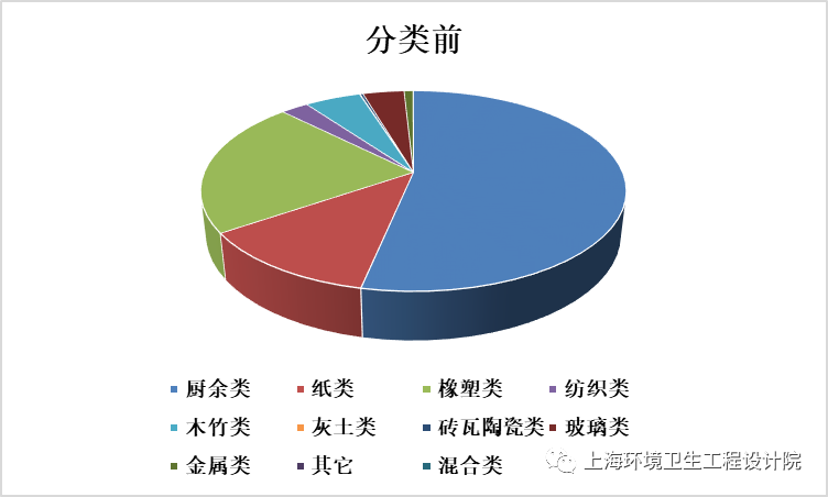 《條例》實(shí)施前,生活垃圾物理組成以廚余類(lèi)為主,其次是橡塑類(lèi)、紙類(lèi),其含量分別占垃圾總量的53.31%、22.06%、12.17%,并含有少量木竹類(lèi)、紡織類(lèi)、玻璃類(lèi)等成分。