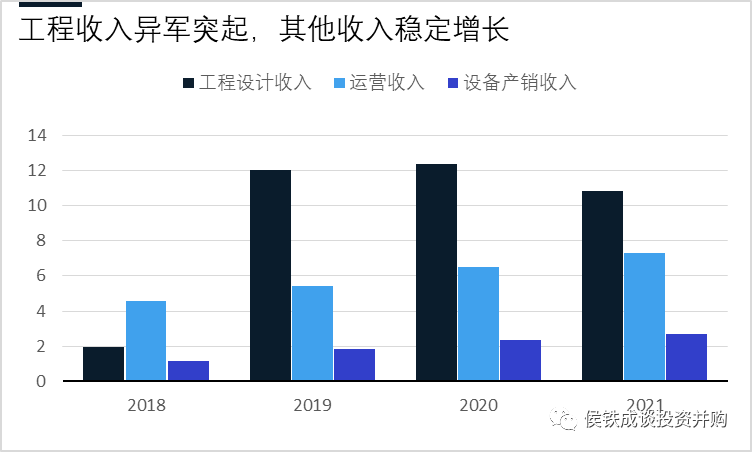 我們看到公司上市后收入利潤有個大的波動,2018年上市后,2019業(yè)績爆發(fā)增長。我們把業(yè)務(wù)拆分后,公司的成長一目了然,2019年主要是工程收入大幅上漲,帶動公司的業(yè)務(wù)收入迅速上升到20億以上。運(yùn)營和設(shè)備收入,則穩(wěn)定增長。