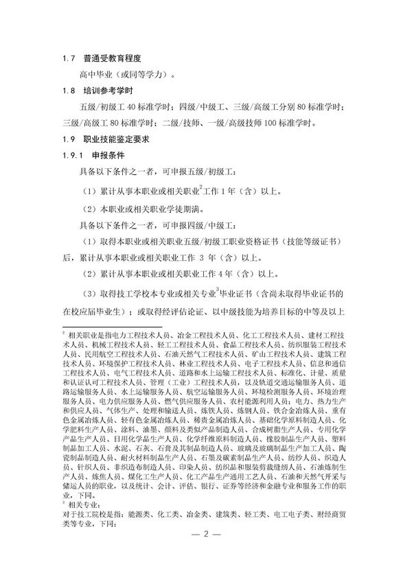 其中碳排放監(jiān)測(cè)員、碳排放核算員、碳排放核查員、碳排放交易員、民航碳排放管理員等五個(gè)工種共設(shè)五個(gè)等級(jí),分別為:五級(jí)/初級(jí)工、四級(jí)/中級(jí)工、三級(jí)/高級(jí)工、二級(jí)/技師、一級(jí)/高級(jí)技師。其中,五級(jí)/初級(jí)工不分工種,統(tǒng)稱(chēng)碳排放管理員五級(jí)/初級(jí)工。碳排放咨詢(xún)員共設(shè)三個(gè)等級(jí),分別為:三級(jí)/高級(jí)工、二級(jí)/技師、一級(jí)/高級(jí)技師。五級(jí)/初級(jí)工40標(biāo)準(zhǔn)學(xué)時(shí);四級(jí)/中級(jí)工、三級(jí)/高級(jí)工分別80標(biāo)準(zhǔn)學(xué)時(shí);三級(jí)/高級(jí)工80標(biāo)準(zhǔn)學(xué)時(shí);二級(jí)/技師、一級(jí)/高級(jí)技師100標(biāo)準(zhǔn)學(xué)時(shí)。