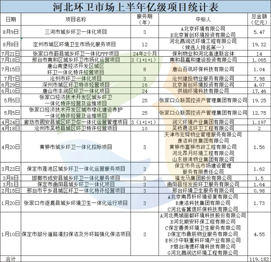 8月8日,超19億元的定州市城區(qū)環(huán)境衛(wèi)生市場(chǎng)化服務(wù)項(xiàng)目公布中標(biāo)候選人公示,河北昌潤(rùn)達(dá)環(huán)境工程有限公司排名第一;8月9日,約5.5億元三河市城鄉(xiāng)環(huán)衛(wèi)一體化項(xiàng)目又被北京環(huán)境有限公司和北京首創(chuàng)環(huán)境投資有限公司攜手?jǐn)孬@。至此,河北省今年已開(kāi)標(biāo)的億級(jí)環(huán)衛(wèi)項(xiàng)目總金額已超119億元,加上在招標(biāo)項(xiàng)目,河北省今年環(huán)衛(wèi)項(xiàng)目的釋放量已超130億元!不僅如此,進(jìn)入2022年之后,河北省在生活垃圾末端處置方面的發(fā)展也較為迅速,主要體現(xiàn)在生活垃圾焚燒項(xiàng)目、建筑垃圾資源化利用項(xiàng)目等方面。而這一切的“大爆發(fā)”,和地方“十四五”時(shí)期各項(xiàng)規(guī)劃及相關(guān)政策有密切聯(lián)系??梢源竽懙仡A(yù)測(cè),未來(lái)5年,河北將是環(huán)衛(wèi)企業(yè)競(jìng)相爭(zhēng)奪的“圣地”。項(xiàng)目釋放量突破130億,國(guó)資控股企業(yè)大放異彩