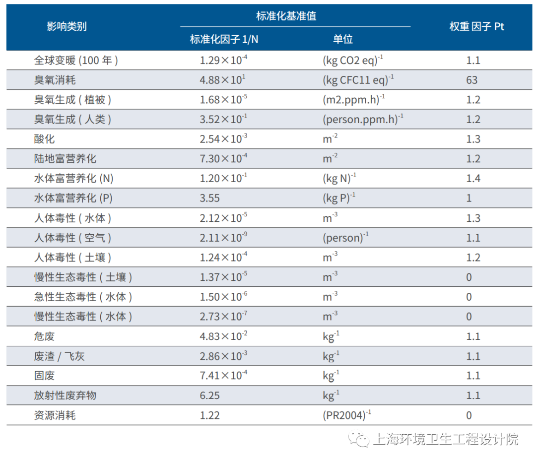 表1 EDIP2003方法的影響類(lèi)別、標(biāo)準(zhǔn)化因子和權(quán)重因子