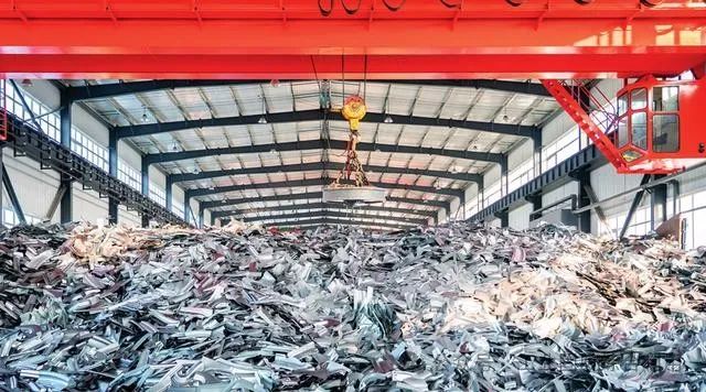 吉林省長(zhǎng)春市一汽綜合利用公司的廠區(qū)內(nèi),電磁起重機(jī)正在搬運(yùn)報(bào)廢鋼材,這些鋼材將被回收利用。