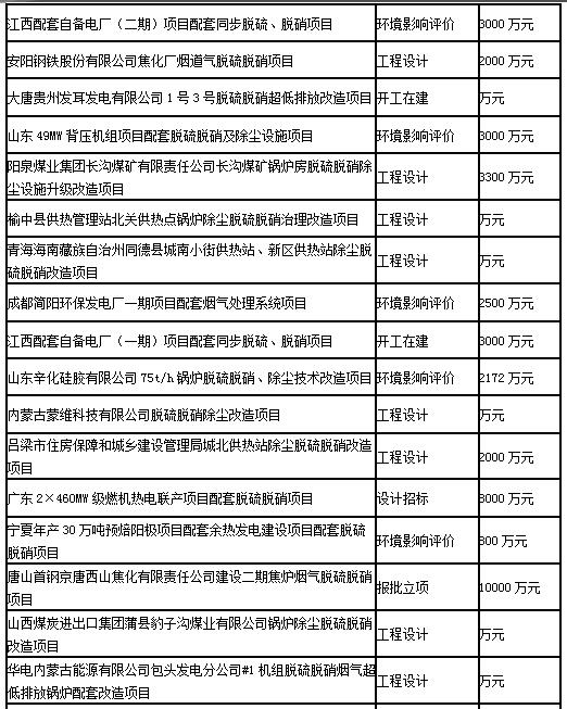 2017年11月份全國擬在脫硫脫硝、水處理項(xiàng)目匯總,涉及脫硫脫硝、煙氣處理等環(huán)保項(xiàng)目。