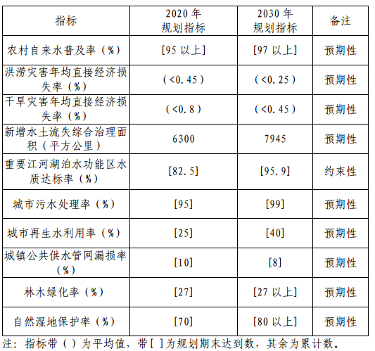 ——水生態(tài)環(huán)境保護(hù)。正常年份非汛期河道生態(tài)水面達(dá)到 5000 平方公里;重要江河湖泊水功能區(qū)水質(zhì)達(dá)標(biāo)率提高到 82.5%,省控重點(diǎn)河流水質(zhì)基本達(dá)到水環(huán)境功能區(qū)劃要求,重點(diǎn)流域水質(zhì)優(yōu)良(達(dá)到或優(yōu)于 III 類)比例總體達(dá)到 60%以上;地級(jí)及以上城市建成區(qū)黑臭水體控制在 10%以內(nèi);新增水土流失綜合治理面積 6300 平方公里;現(xiàn)狀淺層地下水、深層承壓水超采量分別壓減 100%、50%;林木綠化率達(dá)到 27%,自然濕地保護(hù)率達(dá)到 70%。