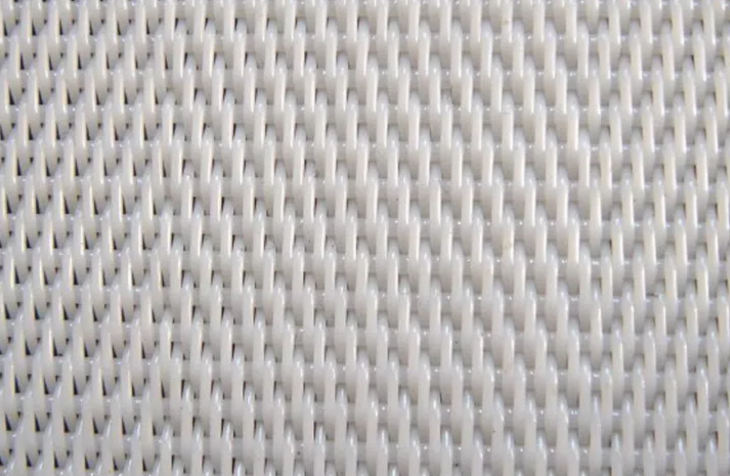 濃縮壓濾一體機(jī)主要利用了濾帶能把水分過濾掉,而把污泥截留到濾帶上的原理進(jìn)行的。濾帶是用高強(qiáng)度的聚酯和尼龍材料的絲線編制而成,這些材料的絲線通過特殊的編織方法做成濾帶后,在高壓拉拽的作用下能保持不變形,下面是一個濾帶的截圖,水分正是通過濾帶編織的絲線之間的縫隙流走的。