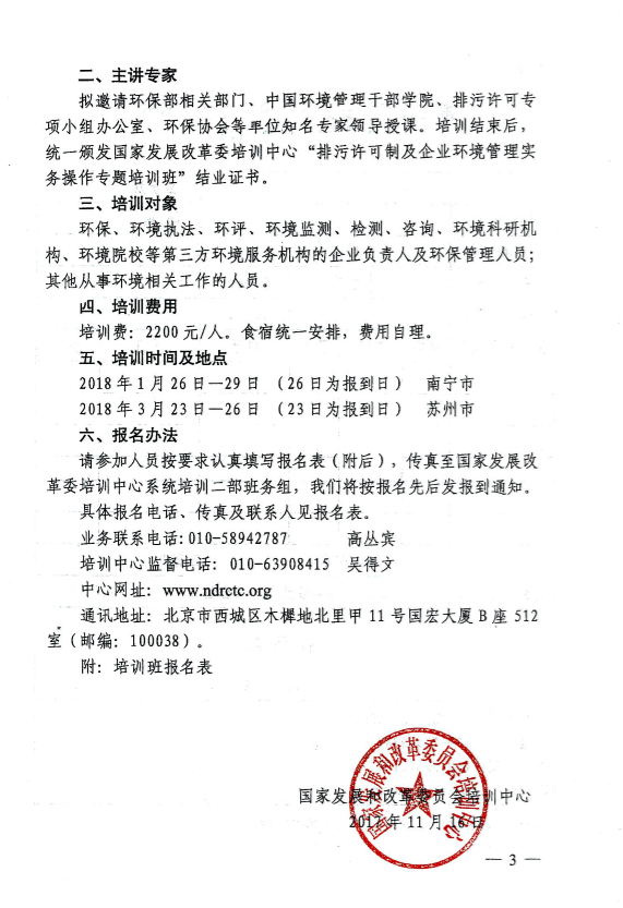 附件:關(guān)于舉辦排污許可制及企業(yè)環(huán)境管理實(shí)務(wù)操作專題培訓(xùn)班報(bào)名表