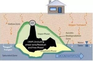 清理完土壤地下水污染之后,一般還要進(jìn)行人類健康風(fēng)險(xiǎn)評估。人類健康風(fēng)險(xiǎn)評估中,很重要的一個(gè)概念就是石油廢氣入侵,這里我們講的石油廢氣入侵包括石油烴類(PHCs)和非石油烴燃料添加劑所產(chǎn)生的污染氣體入侵。一旦地下儲油罐發(fā)生泄漏,并且泄漏區(qū)域及周邊一定范圍內(nèi)有建筑物或者之后場地將會被開發(fā)成居民區(qū)/商業(yè)用地等,那么廢氣入侵就不得不被考慮了。因?yàn)檫@些污染氣體能穿過土壤,通過裂縫等途徑遷移到建筑物內(nèi),對室內(nèi)空氣造成影響,進(jìn)而對人體健康和室內(nèi)安全造成一定威脅。