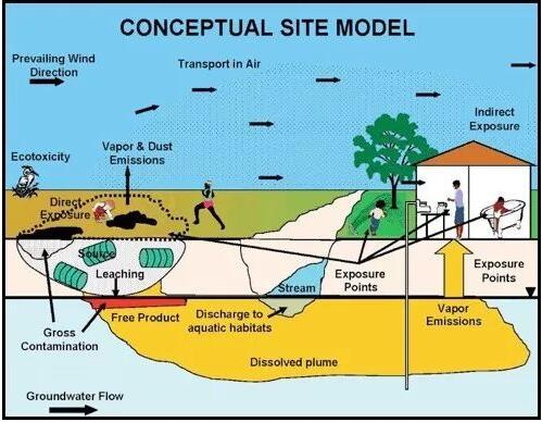 場地調(diào)查是從各種來源收集特定場地的信息和數(shù)據(jù)以表征受污染場地的物理,生物和化學(xué)系統(tǒng)。場地概念模型(CSM)是綜合了所有場地的歷史信息,水文地質(zhì)特征,現(xiàn)場及環(huán)境受體的調(diào)查集成的一個(gè)三維的場地圖,用以說明污染物分布,污染釋放機(jī)制,遷移途徑,暴露途徑和潛在受體。