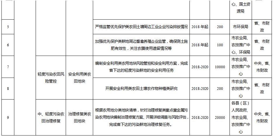 到2020年,受污染耕地安全利用率達(dá)到90%左右,污染地塊安全利用率達(dá)到90%以上,完成省級下達(dá)的污染耕地、污染地塊安全利用或治理修復(fù)任務(wù)。