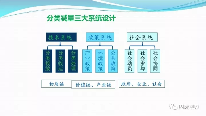 第二部分主要介紹2010年以后上海市推進(jìn)垃圾分類(lèi)的主要做法。2010年,世博會(huì)臺(tái)灣館給我們展示了一個(gè)讓人震撼的垃圾分類(lèi)結(jié)果,上海開(kāi)始火熱的推動(dòng)垃圾分類(lèi)工作?;舅悸诽岢隽艘?guī)劃引領(lǐng)、政府主導(dǎo),市場(chǎng)運(yùn)作、社會(huì)參與。提出這些思路是因?yàn)榈浆F(xiàn)階段,更加注重到了解決全體系問(wèn)題對(duì)垃圾分類(lèi)的重要性。