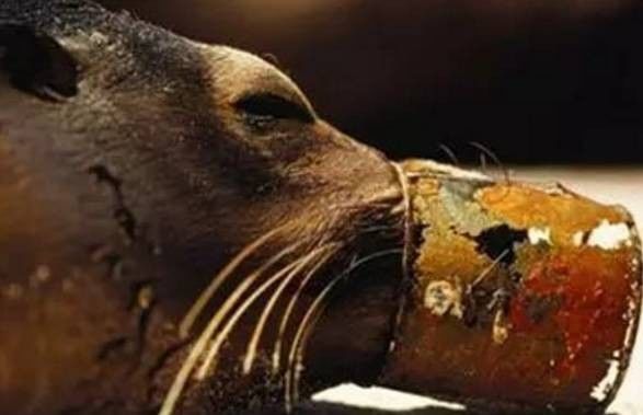 被鐵桶困住的海豹,活活餓死!