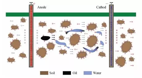 3.電動(dòng)修復(fù)法:是一種原位土壤修復(fù)技術(shù)。通過向污染土壤中置人電極,并通以低壓直流電形成電場(chǎng)。在電勢(shì)梯度作用下產(chǎn)生的電動(dòng)效應(yīng)(電滲析、電遷移和電泳)會(huì)驅(qū)動(dòng)土壤中的流體介質(zhì)發(fā)生定向移動(dòng),從而使污染物伴隨主體流動(dòng)從土壤中移除