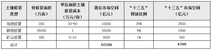 “十三五”期間土壤修復(fù)市場(chǎng)空間測(cè)算