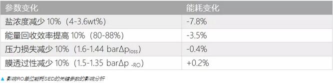 在SED的分析中我們可以得到一些很基礎(chǔ)的重要信息:通過對四個重要參數(shù)各自改善10%對能耗變化的計算可以看出,鹽濃度是最顯著的影響因素,而它又主要受濃差極化現(xiàn)象影響。從這個角度來看,與研發(fā)諸如碳納米管等自身具有高滲透性的膜相比,優(yōu)化系統(tǒng)的流體力學(xué)獲得好處更多。