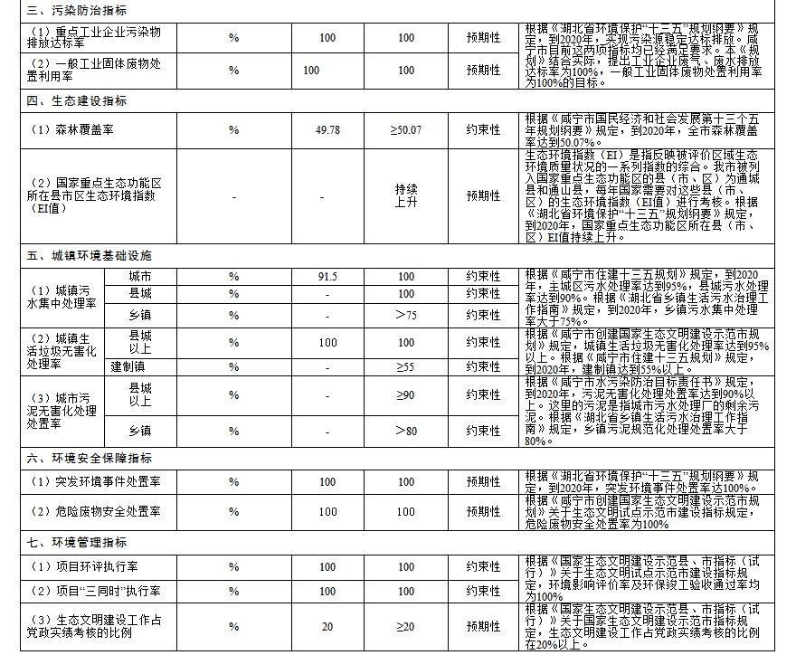 根據(jù)國家、省環(huán)境保護(hù)“十三五”規(guī)劃相關(guān)要求,結(jié)合咸寧實際情況,“十三五”期間環(huán)保規(guī)劃指標(biāo)如下。