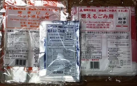每個(gè)地區(qū)都有指定的各類垃圾專用袋。