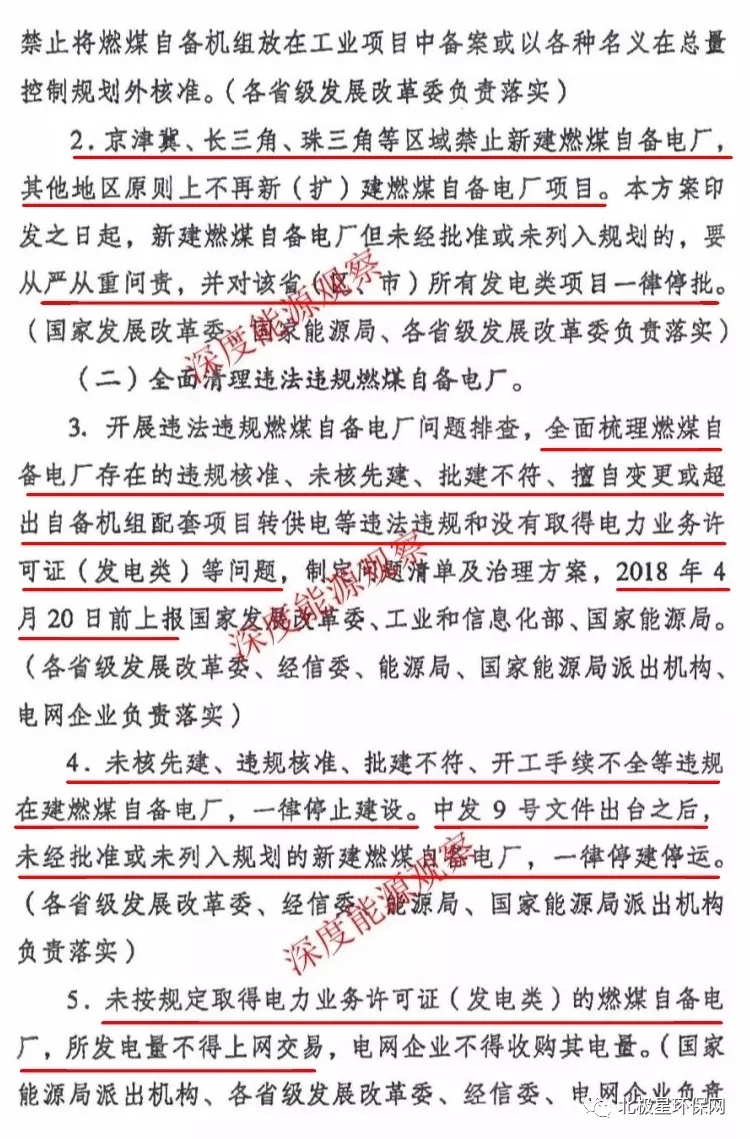 全面梳理燃煤自備電廠的違規(guī)準(zhǔn)備、批建不符等各類問(wèn)題,4月20號(hào)前上報(bào)發(fā)改委、工信部、能源局。對(duì)于違規(guī)在建的燃煤燃煤自備電廠,一律停建!中發(fā)9號(hào)文之后,未經(jīng)批準(zhǔn)或未未列入規(guī)劃的新建燃煤自備電廠,一律停建、停運(yùn)!