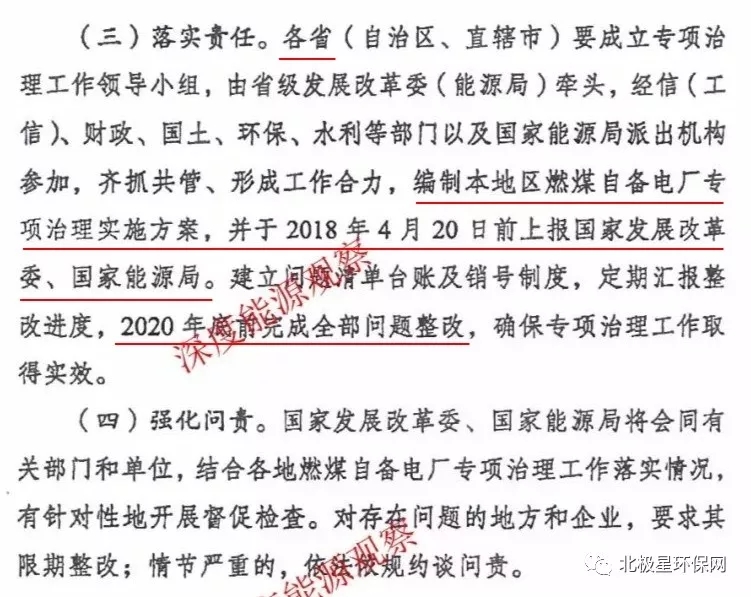 方案最后提到,治理自備電廠是落實(shí)十九大綠色發(fā)展的重大舉措,各級(jí)政府必須高度重視,相關(guān)工作要納入生態(tài)文明建設(shè)考核體系。要求各省成立小組,制定本地自備電廠專項(xiàng)治理方案,4月20日前上報(bào)發(fā)改委、能源局。