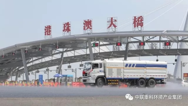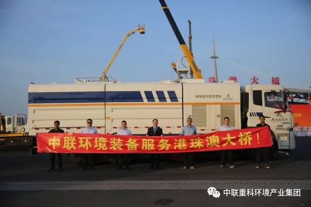 ▲中聯(lián)環(huán)境污水循環(huán)洗掃車將擔(dān)負(fù)起守護(hù)港珠澳大橋的光榮使命