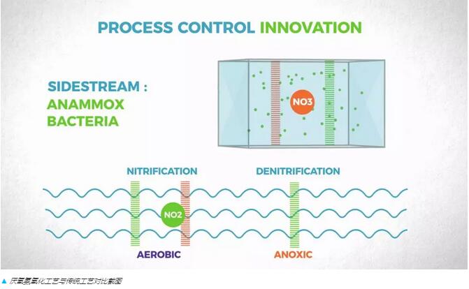 Anammox菌可將氨氮和亞硝酸氮結(jié)合轉(zhuǎn)化為氮?dú)?。這個(gè)工藝過程節(jié)省了能源,而且占地面積更小。