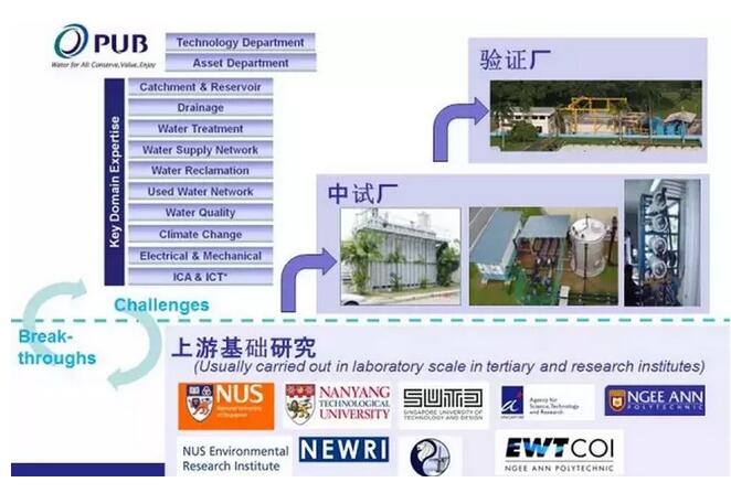 而如何將重大工程和科研投入,實實在在地轉(zhuǎn)為產(chǎn)業(yè)推動力,新加坡的實證研發(fā)和示范研發(fā)機(jī)制功不可沒。水處理技術(shù)從實驗室到中試再到生產(chǎn)規(guī)模使用,須經(jīng)歷一個長期過程,而新技術(shù)的應(yīng)用,獲得業(yè)主的信任和試用的成本也很高,這也是水處理技術(shù)推廣難和推廣慢的問題所在。