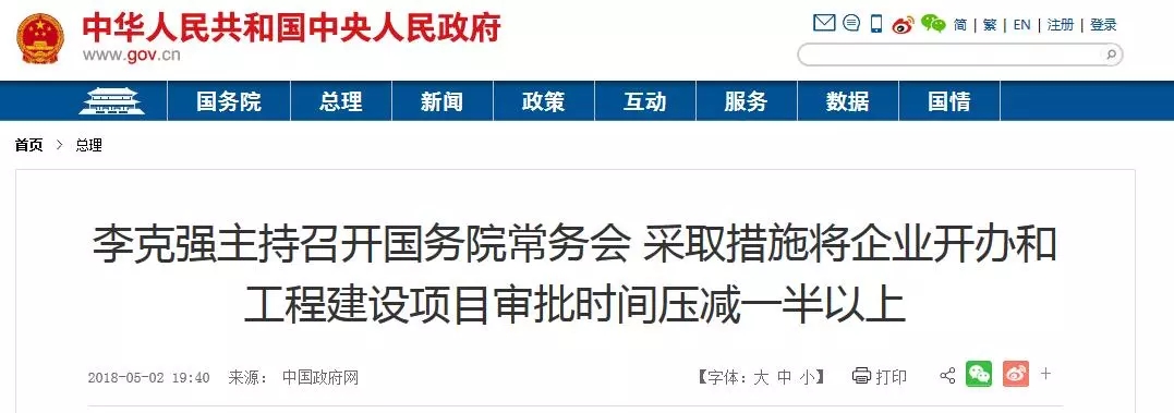 國(guó)務(wù)院總理李克強(qiáng)5月2日主持召開國(guó)務(wù)院常務(wù)會(huì)議,采取措施將企業(yè)開辦時(shí)間和工程建設(shè)項(xiàng)目審批時(shí)間壓減一半以上,進(jìn)一步優(yōu)化營(yíng)商環(huán)境;