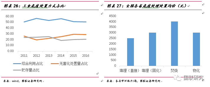 工業(yè)危廢的無害化處置將成為主流。工業(yè)危廢提出“三化”處理原則,即減量化、資源化和無害化,目前主要的處置方式有綜合利用、無害化處置和貯存等。從近幾年的綜合利用、無害化處置方式占比情況看,綜合利用占比整體變化不大,在50%左右,無害化處置方式2016年占比為28.74%,占比在逐年提升,未來預(yù)計(jì)將會(huì)復(fù)制垃圾焚燒發(fā)電的技術(shù)路線。綜合利用包括回收利用、循環(huán)再生等資源化利用方式。如印刷線路板、電鍍污泥、廢鉛酸電池等很多廢棄物都可進(jìn)行資源化處理,這些固廢含有大量的銅、銀、鎳等重金屬,可以回收使之資源化,提升效益。其利潤來源主要受到貴金屬等大宗商品價(jià)格波動(dòng)的影響。無害化處理方式主要包括破碎、分選、沉降、廢液酸堿中和等物理化學(xué)處理、焚燒熱解及填埋等,其中焚燒處置危險(xiǎn)廢物在世界上應(yīng)用廣泛,是最成熟的一種熱處理技術(shù),國內(nèi)的焚燒處理價(jià)格相對(duì)其他處理方式更高,國內(nèi)焚燒平均價(jià)格在2000-4000元/噸不等,有的地區(qū)甚至更高,價(jià)格和廢棄物的處理難度和污染成分有關(guān),同時(shí)商業(yè)運(yùn)營模式清晰,未來將成為主流的危廢處置方式。