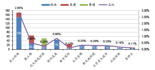 圖8顯示:截至2017年底,東江環(huán)保、威立雅、深圳危廢、光大綠色、蘇伊士等十家龍頭企業(yè)市占率僅不到6%。