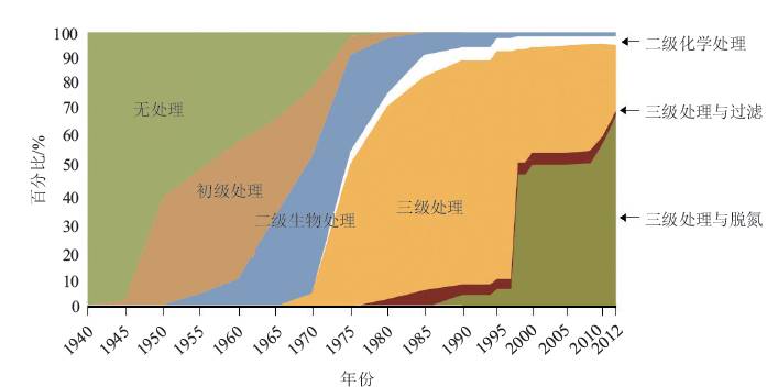 到20世紀(jì)20年代為止,幾乎所有的大城市都建立了市政污水管道系統(tǒng),市鎮(zhèn)和社區(qū)污水系統(tǒng)的建設(shè)進(jìn)度仍然緩慢。而市政污水處理能力不能滿足河流、湖泊、沿海水域快速惡化的水質(zhì)量問(wèn)題的需求。1940年,全國(guó)僅有15個(gè)運(yùn)營(yíng)的城市污水處理廠(到1955年,此數(shù)目增加了一倍)。大量排放的營(yíng)養(yǎng)物質(zhì)和耗氧污染物導(dǎo)致了魚(yú)類大面積死亡和水傳染疾病,越來(lái)越引起公眾的關(guān)注。此外,在20世紀(jì)上半葉,水污染問(wèn)題被視為一個(gè)需要地方解決的城市問(wèn)題,對(duì)采取綜合治理行動(dòng)造成了阻礙。