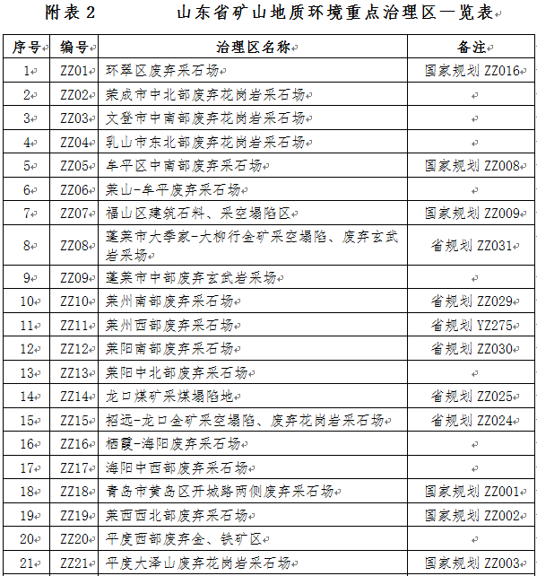 山東省礦山地質(zhì)環(huán)境保護(hù)與治理規(guī)劃