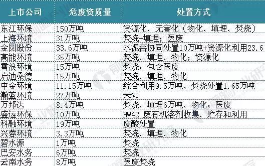 上市公司危廢資質(zhì)總量整理