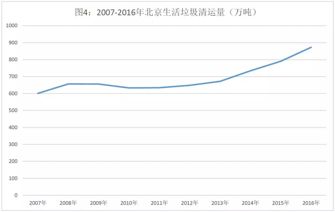 以北京為例,2007-2016年十年間,生活垃圾清運(yùn)量增長了45%,同期人口數(shù)量增長29.7%,遠(yuǎn)低于垃圾清運(yùn)量的增長??梢?,北京市居民最能“掙錢”,同時(shí)產(chǎn)生垃圾的能力在不斷的“增強(qiáng)”。