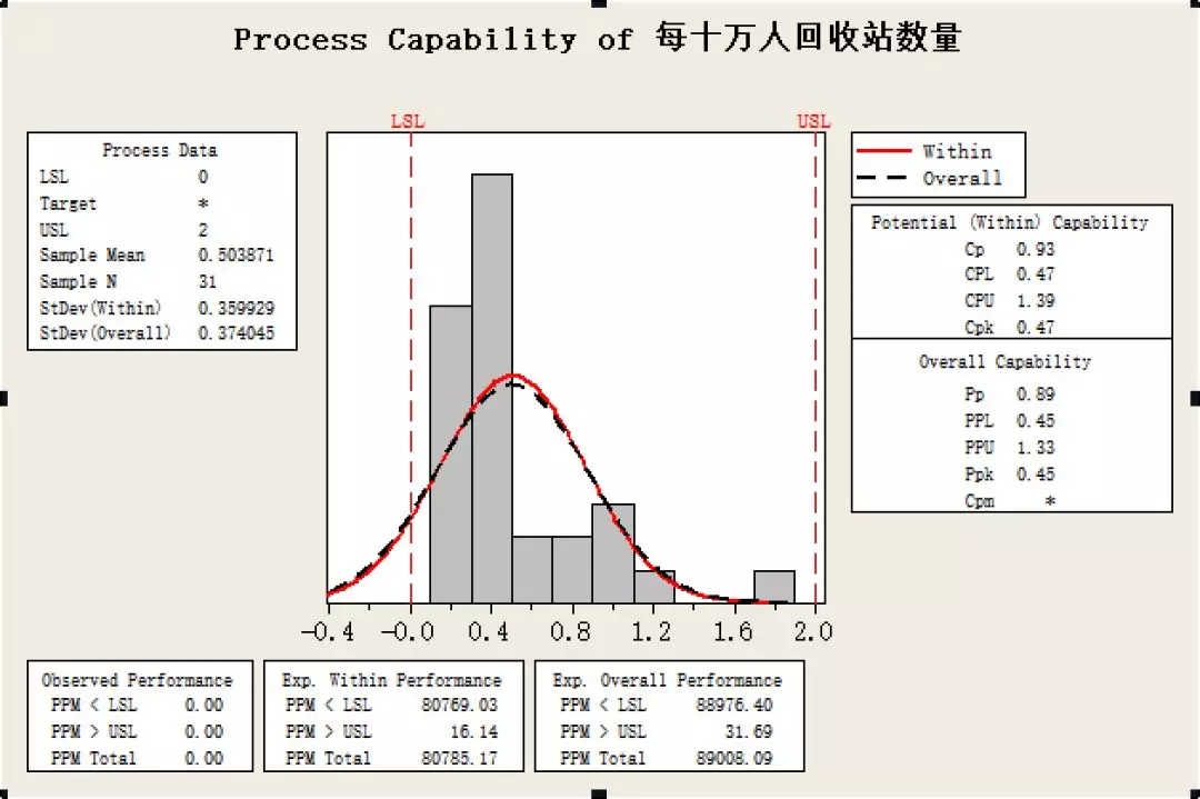 根據(jù)對(duì)每日垃圾清運(yùn)量數(shù)據(jù)的直方圖以及正態(tài)分布圖,可以看出,全國各大省市的每日人均垃圾清運(yùn)量基本符合正態(tài)分布,其中大部分省市的人均每日清運(yùn)量在0.2-0.6公斤之間,平均值為0.42公斤。