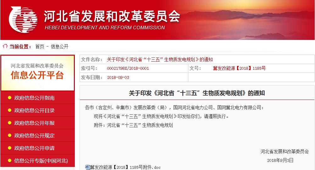 《河北省“十三五”生物質(zhì)發(fā)電規(guī)劃》發(fā)布(全文)
