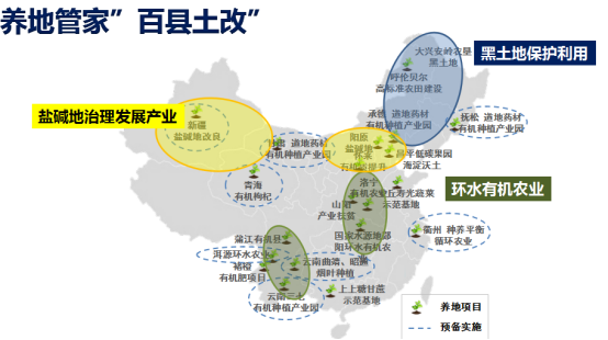 接下來,講一下中關(guān)村百草園的案例。在國際中藥材市場,中國的中藥占有率不到0.2%,日、韓是85%,他們在國際市場的中藥多是在中國種植的,但標準不一樣,關(guān)鍵就是高碳低氮健康土壤的培育。于是,我們在中關(guān)村發(fā)起了一個百草園計劃,成立了有機道地藥材研究院,用中醫(yī)思想解決中藥問題,其中最主要的就是有機質(zhì)安全、高效、標準化利用,標準化農(nóng)時管理。我們和北師大北中醫(yī)國家大學(xué)科技園等機構(gòu)共同成立這個研究院,作為一個平臺,這也是中關(guān)村六姐妹們共同為有機中藥做的一個平臺,建立100個有機道地藥材研究基地,它的第一個服務(wù)對象是中關(guān)村的生物制藥企業(yè),我們將在國家貧困縣做100個有機道地藥材項目,成為藥企自有藥材基地的運營服務(wù)商。