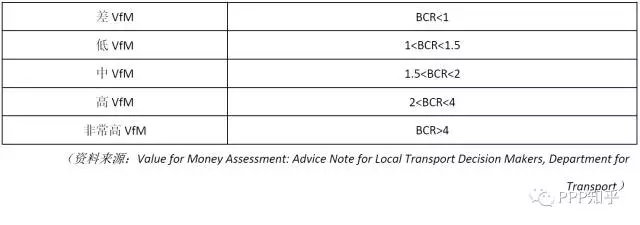 英國(guó)交通部對(duì)效益成本比(BCR-Benefit Cost Ratio)所反映的物有所值(VfM)給出了定性的導(dǎo)則,幫助地方政府做出投資決策??梢钥闯鯟rossrail處于中到高VfM的范圍。