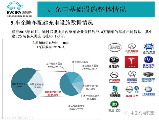 截至2018年10月,通過(guò)聯(lián)盟成員內(nèi)整車(chē)企業(yè)采樣約57.3萬(wàn)輛車(chē)的車(chē)樁相隨信息,其中建設(shè)安裝私人類(lèi)充電樁40.1萬(wàn)臺(tái)。