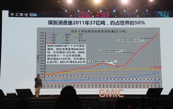 城市化過(guò)程當(dāng)中、工業(yè)化過(guò)程當(dāng)中需要用能源,需要供電、供熱等等。在中國(guó)我們過(guò)去全世界煤炭使用的情況,在中國(guó)支持工業(yè)化、城市化的過(guò)程主要能源是煤炭。特別是在2000年之后紅色的煤炭消耗量的增量在飛速的增長(zhǎng)。這三個(gè)指標(biāo)上可以看出,我們的工業(yè)化速度是非常快的。
