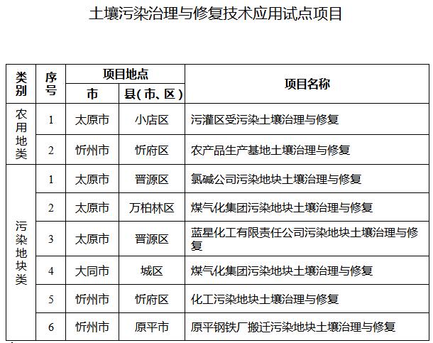 20.推進土壤污染治理與修復項目庫建設,強化土壤污染防治項目儲備。進一步抓好土壤污染治理與修復技術應用試點工作,2017年重點實施2個農用地類和6個污染地塊類土壤污染治理與修復技術應用試點項目(見附件),按照國家規(guī)定時限要求完成。以城市周邊污灌區(qū)、受污染耕地集中區(qū)域為重點,各市要啟動一批受污染耕地治理與修復項目,全省共啟動3000畝受污染耕地治理與修復。(省環(huán)保廳、省農業(yè)廳、省國土資源廳牽頭,各市人民政府負責落實)