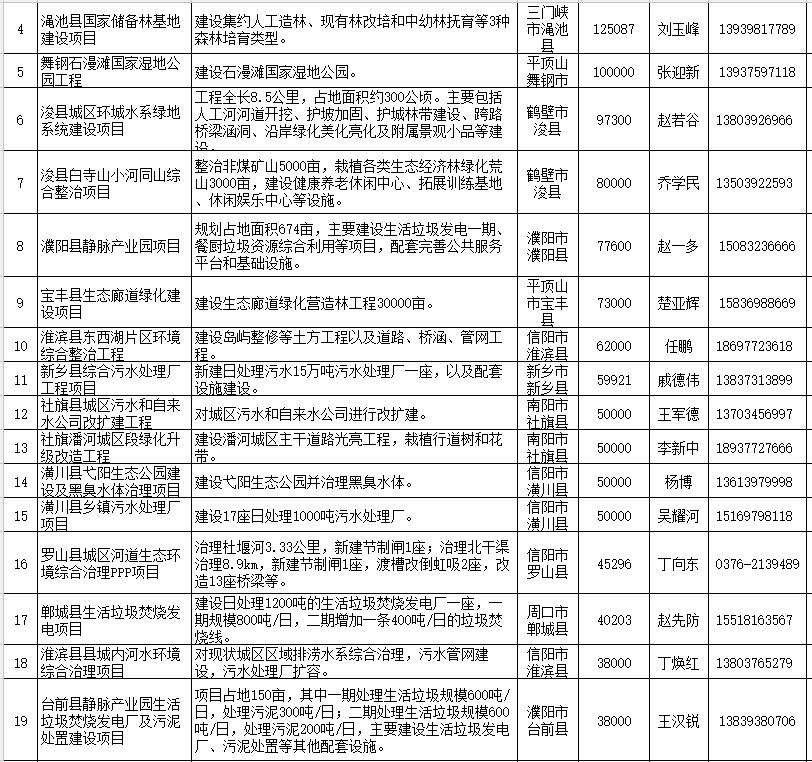 河南省2018年擬向民間資本推介項(xiàng)目清單(涉環(huán)保部分)
