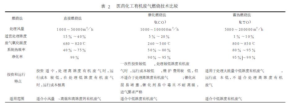 現(xiàn)階段,我國對醫(yī)藥化工行業(yè)揮發(fā)性有機廢氣的氧化治理技術(shù)主要包括:光催化氧化、直接燃燒法、催化燃燒技術(shù)及RTO等,各種處理措施針對醫(yī)藥化工有機廢氣存在一定優(yōu)劣性[2~5],具體匯總見表2。