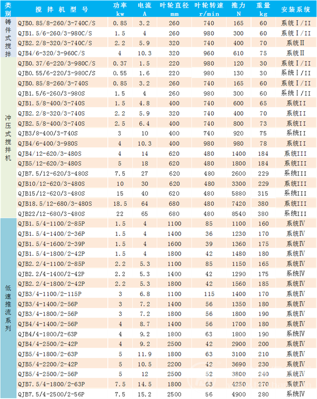 QJB型潛水攪拌機可分為混合攪拌和低速推流兩大系列。