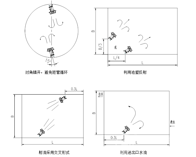 如用于規(guī)則的池型,建議面對面錯開布置(授權(quán)圖片,版權(quán)歸原作者所有)